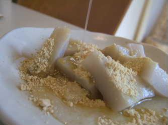 写真は前回浅草物産展で買った、柴又にある『亀家』のくず餅。白みつと栗の風味のきな粉添え。ブースには寅さんの実物大の写真が飾られていました。