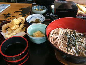 真室川町の取材の帰り、尾花沢にあるお蕎麦屋さんでお昼をとることに。明友さんはお菓子やカレーパンなどの商品も出している会社で、席につくとお茶と一緒にそばまんじゅうも運ばれてきました。お蕎麦はセットものも多く、天ぷらやゲソ天のほか、お餅のセットなどもあります。店内はほとんどがテーブル席で、隣には物産品もあり、ドライブの途中に立ち寄るに丁度いいお店です。