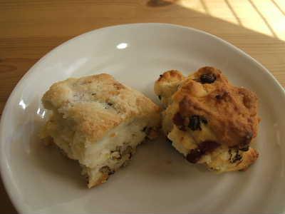 お友達からいただいたおすそわけ。左が神戸屋キッチンで右がアンデルセン。どちらも自由が丘産でございます。スコーンはざっくり硬くて、なかは少しさっくりが好みなんですが、時代は変わっているんですね〜。神戸屋キッチンのそれは、もはやスコーンの域を超えているというか、ふっくらしっとりやわらかく、たっぷりのチョコチップとハードなグラニュー糖がふりかけてありました。