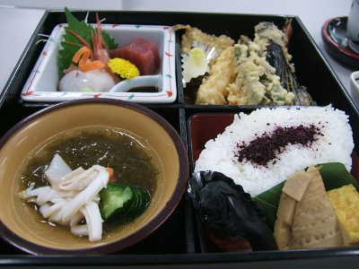 昨日の会議の後のお昼は、立谷川にある料理屋さん「のろ川」のお弁当。お店ではランチもやっている模様。たっぷりのモズクとタコのお刺身が美味しかったです。