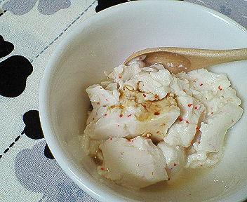 ウエイの特集でお世話になった「仁藤商店」さん。県産大豆を使った豆腐製品がたくさん並び、お持ち帰り自由のおからもあります。写真は唐辛子入りの豆腐。見た目もちっちゃいドットでかわいいです。