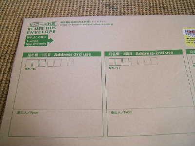 封筒の表側は3回使えるようにデザインされています。