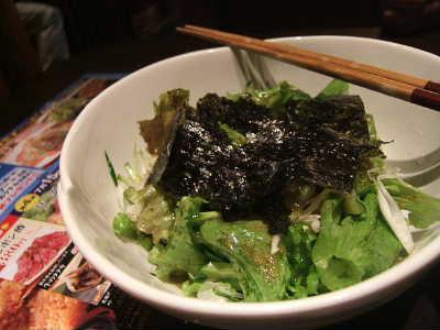 駅前にできた居酒屋さんです。木造りのボックスタイプの席。まだオープンしたてなのでスタッフのみなさんが初々しい(*^^*)。店長さんは立ち上げのために山形へ来られているのかな。接客がお見事でした。写真は韓国海苔をつかったサラダ。勢いあまってドレッシングをかけすぎちゃったみたいですが、もう少し少なかったら、おいしかっただろうなー。