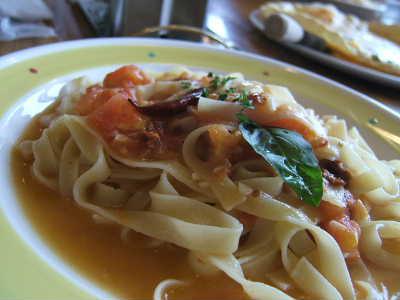 農家のおかあさんたちが運営しているイタリアンレストラン。久しぶりに行っていました。写真はトマトソースのフェットチーネとマルゲリータ。