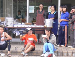 中学生、高校生、婦人部の方々が出してくれる、おにぎりと