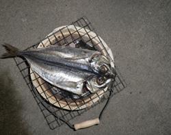 秋刀魚は長いのでこの小さな七輪では頭と尻尾が出てしまうので