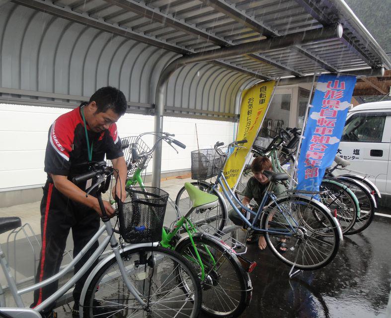 ここは屋根つきの自転車小屋なのであまり濡れずにメンテナンスを行うことができた。