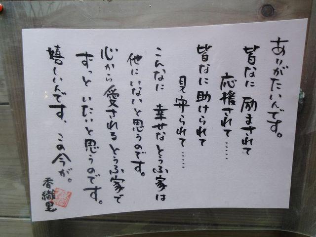 手作り豆腐の店に寄ったら、壁に貼ってあった