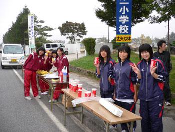 長井マラソン大会の給水ポイントでお手伝いをしていただきました。