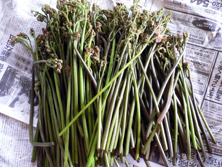 まず沸騰したなべにワラビを入れ、重曹も少し入れ