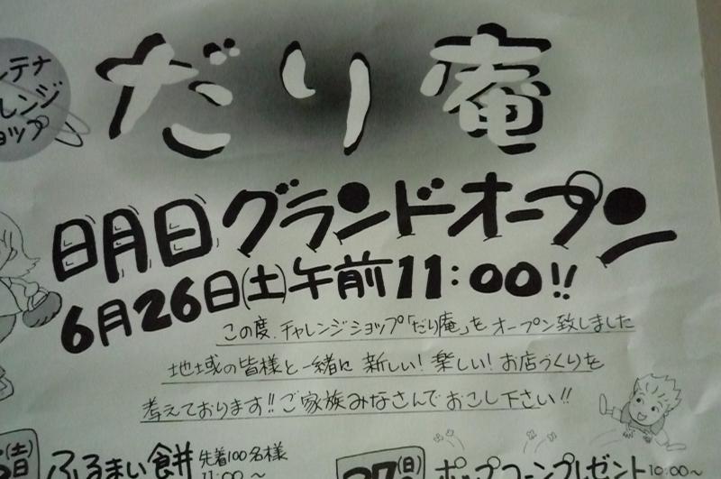 ▼アンテナチャレンジショップ だり庵 26日オープンへ