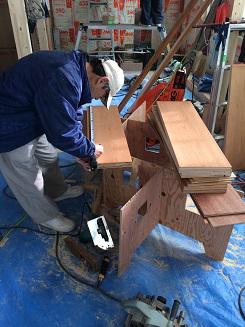 ちょうど大工さんが階段を施工している所で、写真をとらせていただきました。