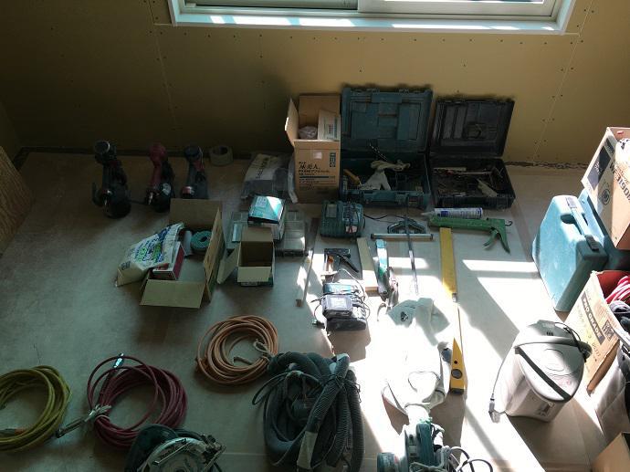 現場には様々な材料や工具類などで溢れかえっております。