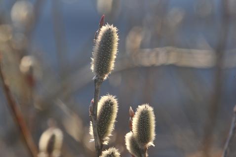 ふと見ると、「ネコヤナギ」が夕日に照らされ輝いていた。