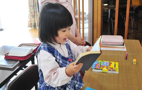 賛美をしている様子です。まだ歌うことは出来ないのだが賛美歌を