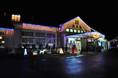 色鮮やかな光が駅舎を灯している。赤字減らしが出来たらいいね!と祈る。
