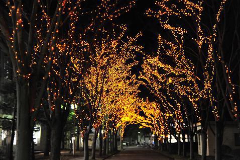 今年のイルミネーションは地球温暖化を意識してエコな、ともしび。発光ダイオード(LED)消費電力の少ない電球を使用。暗い世を照らしている。