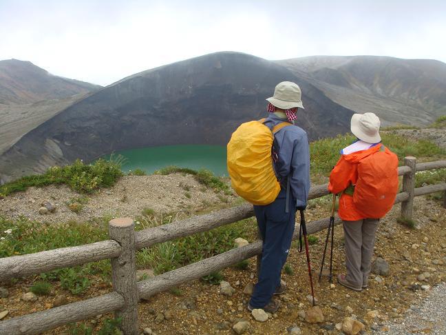 蔵王のお釜を見ている埼玉からの観光客。仲の良いご夫妻、定年近いと話してくれた。