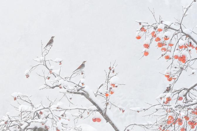野鳥にはありがたい素晴らしいプレゼントだ。クリスマスも過ぎプレゼントで頂いた品物も何時しか記憶から喪失する時期。しかも、大雪・寒さが身に凍みる雪原の中で唯一のご馳走にありつける。自然の恵みにを受ける野鳥。神さまが養ってくれているさまをみる。