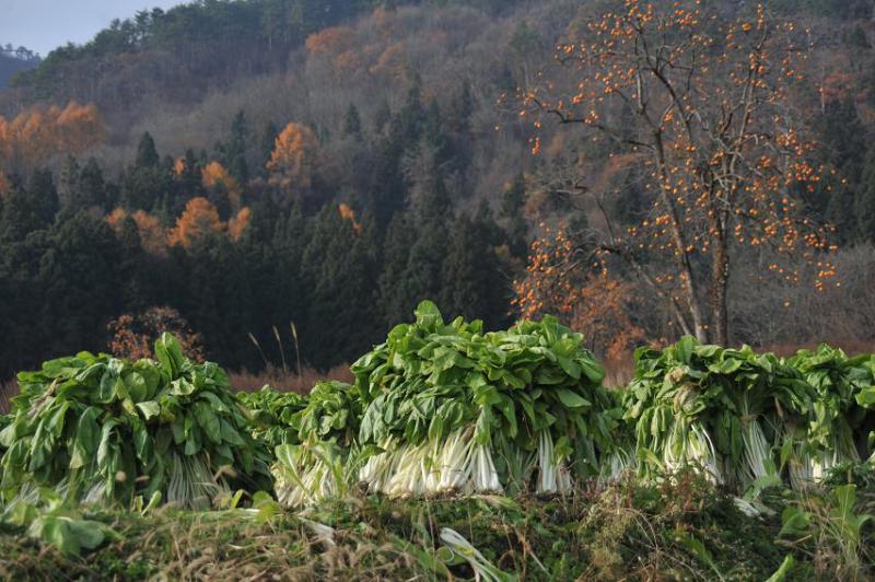 米沢市の南西部をドライブしていたら、古志田地域で雪菜の収穫作業をしていた。ちょうど雪菜を束ねていて、雪の中に囲い、さらに美味しく成長させる為もう一度作業を加えるのだそうだ。