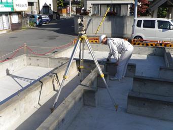 明日の土台設置前に基礎天端に基準の墨を出しています。
