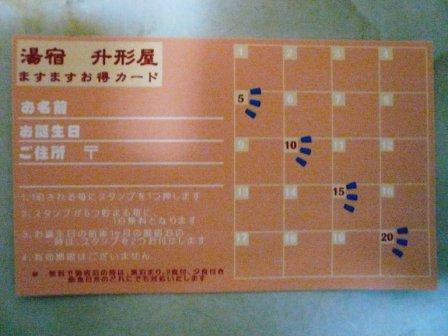 宿泊された時に、1ヶポイントが付き、5回宿泊すれば、次回無料で宿泊できるカードです。