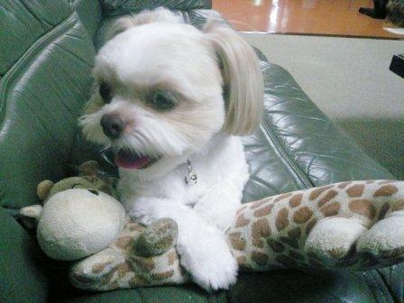 今日は、夕方から、枕のキリン君と、ロビーで遊んでました。