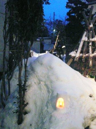 今回は、中庭にも、たくさん雪灯篭を作りましたが、主人の撮り方がへったくその為、ごめんなさい。1つしか写っておりません。