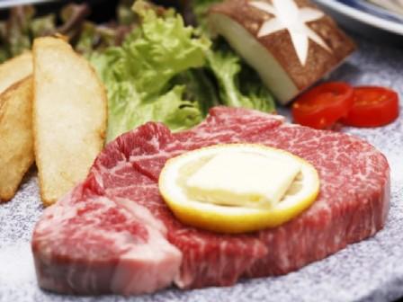 旅館の宿泊料金に1000円プラスで、山形牛のフィレステーキ100g