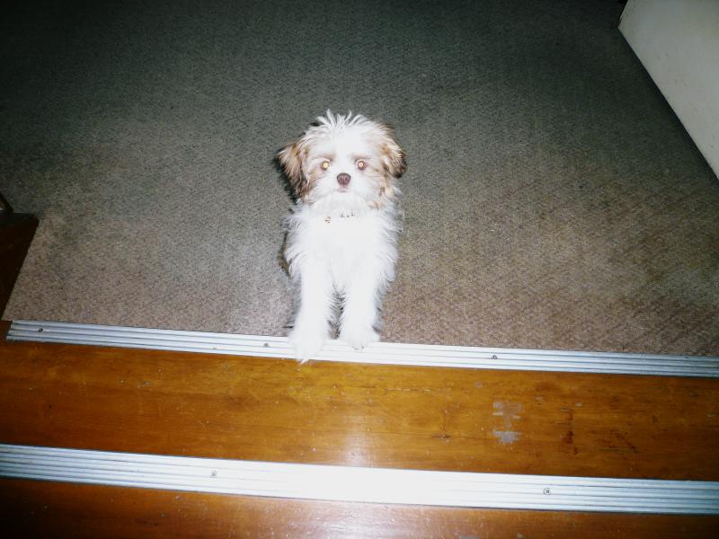 「スピア」は階段が登れません。一生懸命階段を登る練習をしているんですけど・・・今日なんか階段の1段目に体を「ごっっ」ってぶつけてました。痛かったねぇ。かわいそうに。そうやってだんだん登れるようになるんだよ。ガンバレ「スピア」