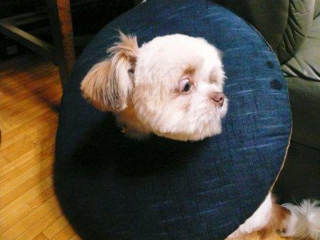 夕方クッションで遊んでいたら・・・あらら、抜けなくなってしまいました。