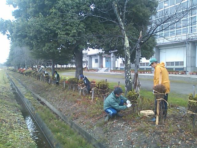 中庭付近を作業していただいてます。気温の低い中、みなさんありがとうございます。