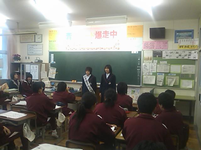 来年度の生徒会に向けて選挙活動が始まっています。立候補者と責任者で、どんな生徒会にしたいのかを全クラスを回って訴えています。