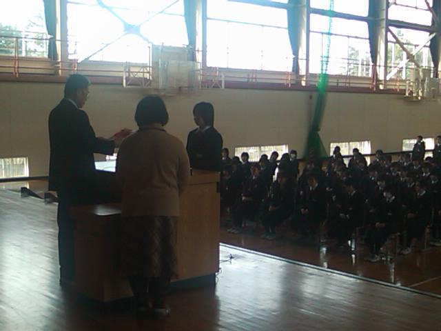 平成21年度修了式です。各学年の代表が校長先生より修了証を受け取ります。
