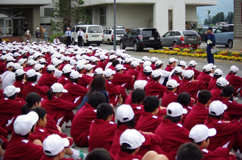 今年度1回目の避難訓練が行われました。今回は理科室から出火した想定で全校一斉に避難を行い、その後消防署の方から講話をいただきました。