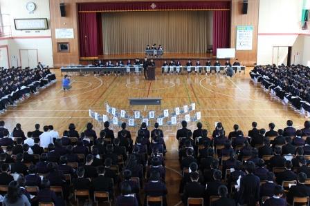 5月1日 生徒総会が行われました。今年度の生徒会スローガンは「At HOME」に決まりました。安心できて安全な学校生活を送ることができるアットホームな楽しい学校にしていきたいという思いが込められているという説明が生徒会長からありました。そして、「459人全員でAt HOMEな学校を創り上げていきましょう」という力強い提案がありました。