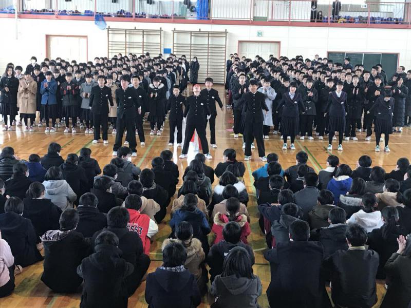 1/23 進路激励会が行われました。1、2年生が新体制となって取り組む最初の行事です。大きな声で応援しました。