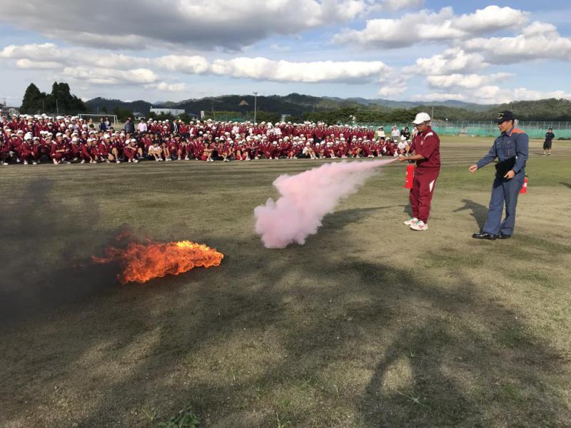 9/26 避難訓練が行われました。火災を想定した訓練。グラウンドに避難後、代表生徒による消火訓練を行いました。