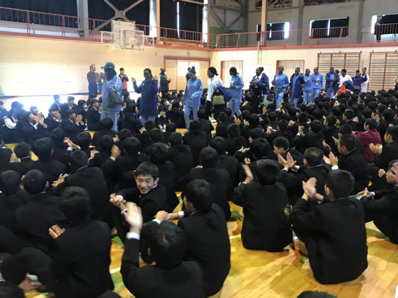 タンザニアの選手団のみなさんが来校されました。これから交流会を行います。