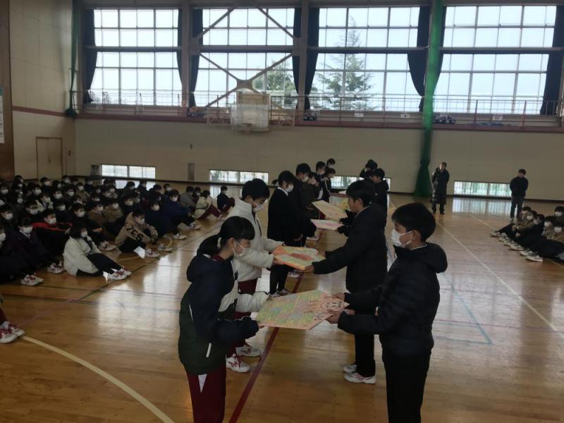 1/21 進路激励会が行われました。1、2年生から3年生に激励応援とメッセージが書かれた絵馬が贈られました。