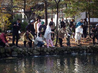 11月24日、EM技術を利用して、自然環境改善活動を行おうという人たちで、山形市「鳥海月山両所の宮」の鏡池の浄化活動を行ってきましたが、此の度、EM技術の創始者である、比嘉照夫教授が視察に来ました。報道機関(2局)も来ました。