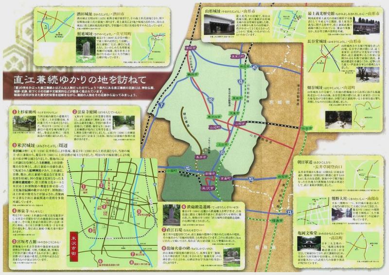 内 容:直江兼続の紹介、「天地人」あらすじ、関連史跡の紹介、山形県内へのアクセス