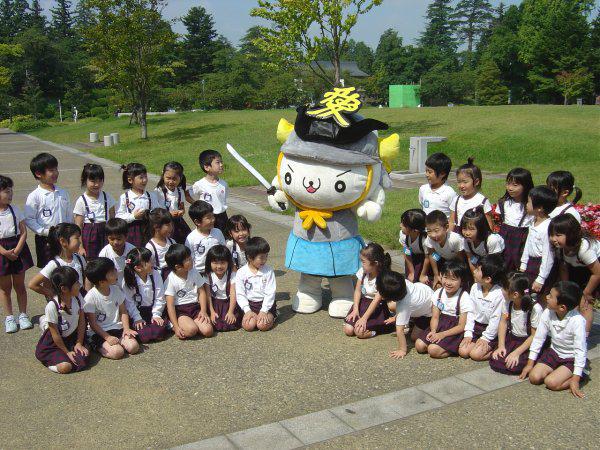 子ども達と一緒に記念撮影です。みんな「かねたん」の方を向いちゃってます。