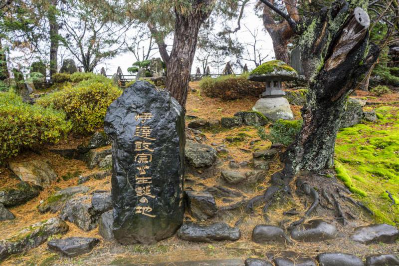 「伊達政宗公生誕の地」の碑は、米沢城址・上杉神社参道脇と、一説に伊達家統治時代の「米沢城」とされる舘山城址にそれぞれ建てられています。