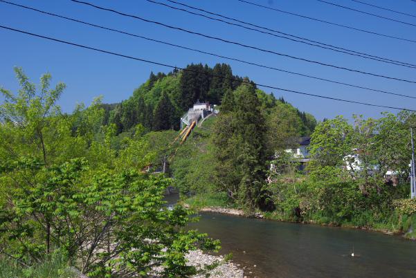 山の中腹に見えるのは、東北電力舘山発電所です。