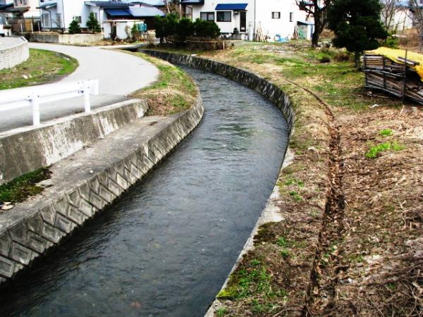 綱木・田沢・梁沢など鬼面川の上流から、薪木を運ぶために掘られた川です。上流の山間から流された薪木は帯刀堰から木場川に入り、木場町の貯木場に積み上げられ、ここから城中に運ばれて行きました。