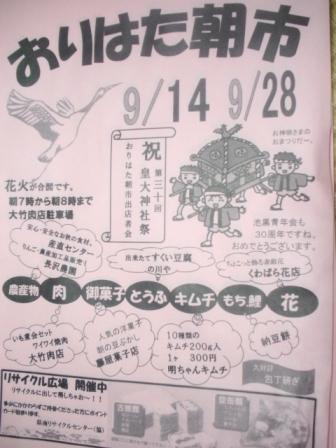 ▼9月14日 おりはた朝市のお知らせ