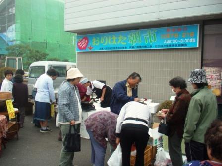 漆山の大竹肉屋さんの前での朝市の様子です。