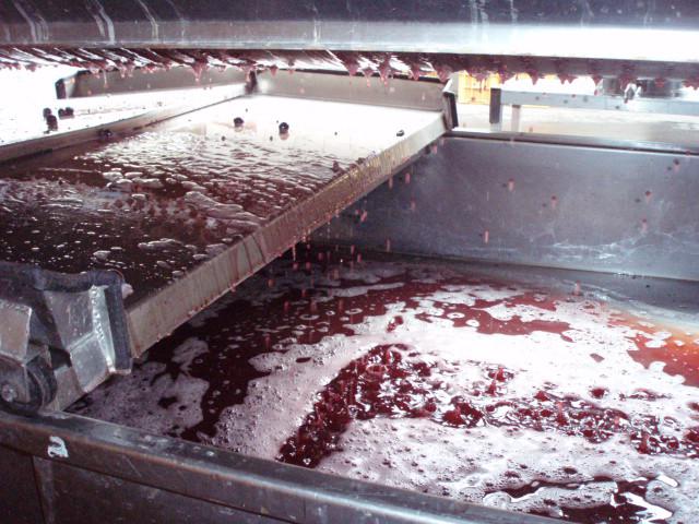生のブドウだと、搾るとジャーって言う音をたててプレス機から果汁が出てくっけんど、氷果は搾ってもポタポタってしか出て来ねがら時間がかかります。