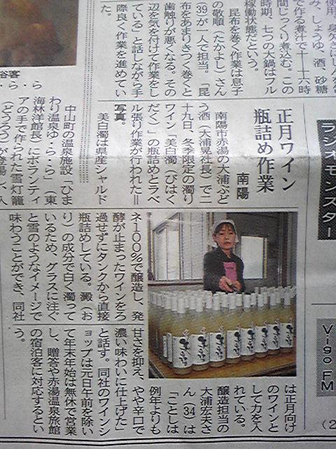 今日の山形新聞朝刊に、お正月用ワインの出荷作業の記事が載ってます。